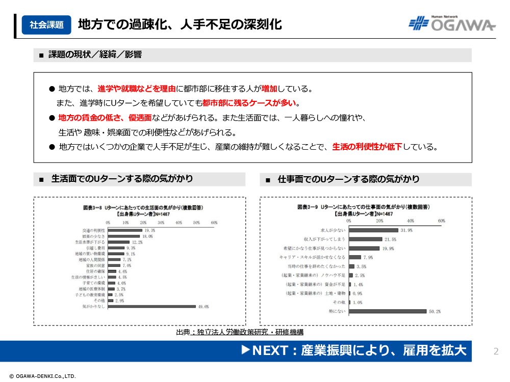 - 地方ではいくつかの企業で人手不足が生じ、産業の維持が難しくなることで、生活の利便性が低下している。