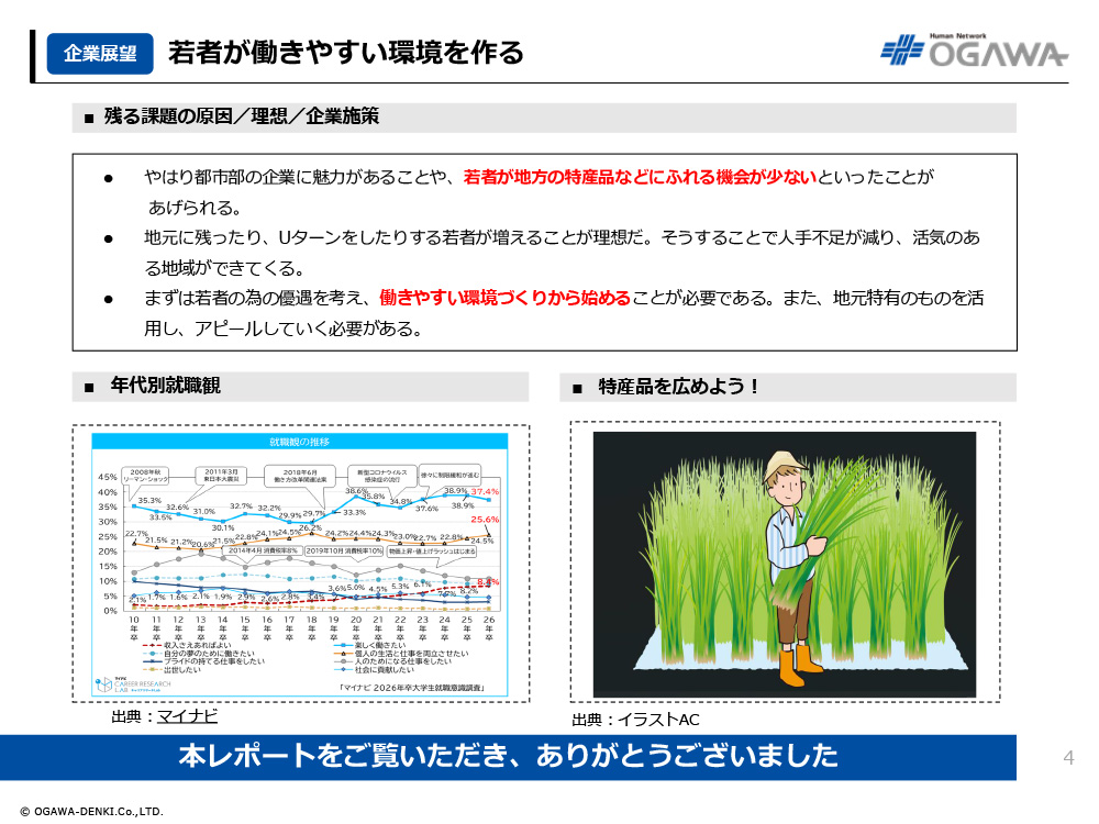 - やはり都市部の企業に魅力があることや、若者が地方の特産品などにふれる機会が少ないといったことがあげられる。